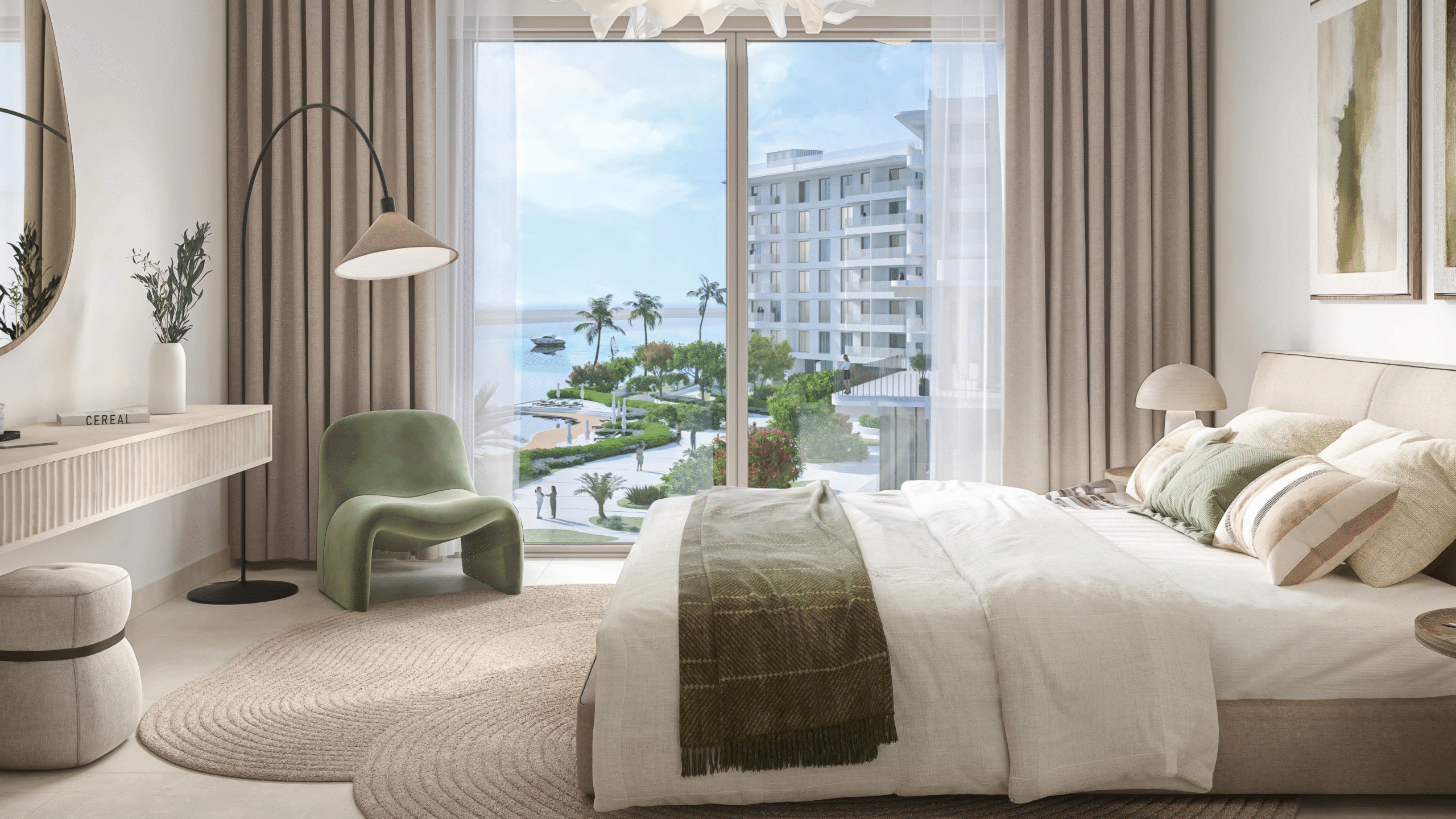 From the moment you arrive, calming water features and natural elements set the tone for relaxed island living. An exclusive Beach Club sits at the heart of the community, while sea views from private balconies create a daily sense of escape. This is a place where balance, comfort, and tranquillity come together effortlessly.